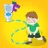 男の子と女の子が線路沿いのトイレに駆け寄り、ゲームは成功です。